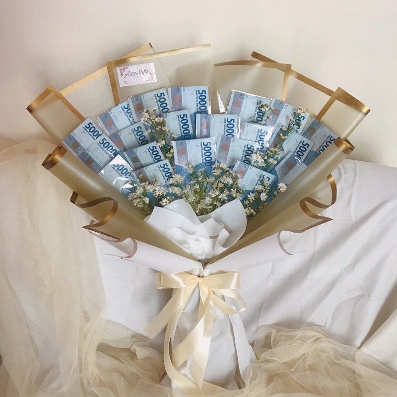 Tutorial how to make giant money bouquet (big size) very simple ; Nggak hanya bunga dan snack aja yang bisa dijadiin buket tapi uang juga bisa, lho. Semoga tutorial kali ini bermanfaat yaa. · ambil empat sampai enam lembar uang kertas yang . · potongan kawat lurus untuk setiap bunga. Setelah itu, buat kelopak bunganya.